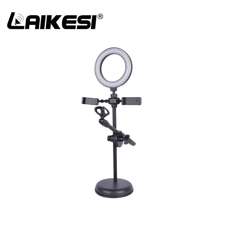 soporte de mesa con luces para telefono celular y microfono uso chat youtube facebook online